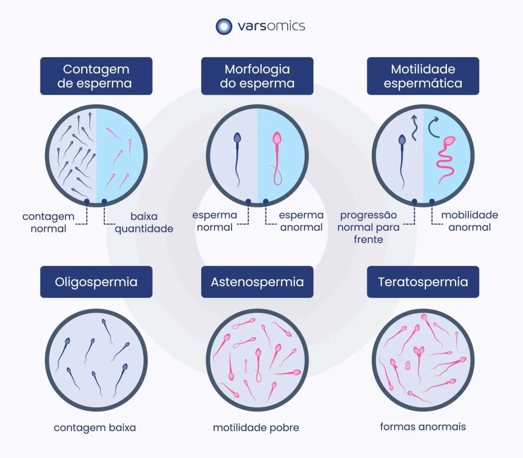 É chamado de azoospermia à ausência de espermatozoides no esperma e oligospermia a uma quantidade reduzida de espermatozoides no esperma.